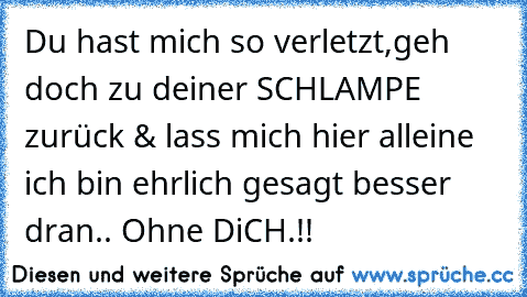 More @ http://www.xn--sprche-5ya.cc/du-hast-mich-so-verletztgeh-doch-zu-deiner-schlampe-zur%C3%BCck-lass-mich-hier-alleine-ich-bin-ehrlich-ge