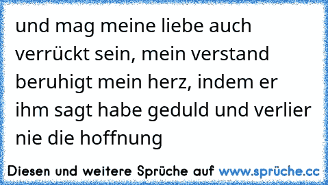 More @ http://www.xn--sprche-5ya.cc/und-mag-meine-liebe-auch-verr%C3%BCckt-sein-mein-verstand-beruhigt-mein-herz-indem-er-ihm-sagt-habe-gedul