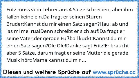 More @ http://www.xn--sprche-5ya.cc/fritz-muss-vom-lehrer-aus-4-s%C3%A4tze-schreiben-aber-ihm-fallen-keine-einda-fragt-er-seinen-sturen-brude