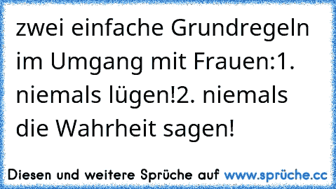 More @ https://www.spruchmonster.de/zwei-einfache-grundregeln-im-umgang-mit-frauen1-niemals-luegen2-niemals-die-wahrheit-sagen