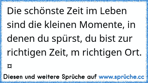 More @ https://www.lustige-sprueche.net/schoene-sprueche/die-schoenste-zeit-im-leben-sind-die-kleinen-momente-in-denen-du-spuerst-du-bist-zur-richtigen-zeit-am-richtigen-ort-564