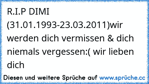 More @ http://www.xn--sprche-5ya.cc/rip-dimi-31011993-23032011wir-werden-dich-vermissen-dich-niemals-vergessen-wir-lieben-dich%E2%99%A5