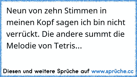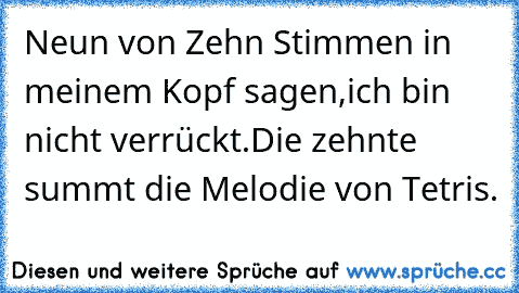 More @ http://www.xn--sprche-5ya.cc/9-von-10-stimmen-meinen-kopf-sagen-ich-bin-nicht-verr%C3%BCckt-die-andere-summt-die-melodie-von-tetris-d